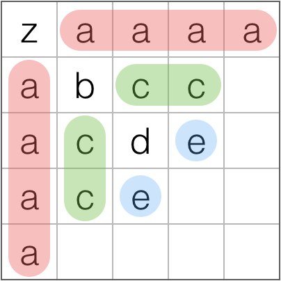The first row and first column both read "abcd".